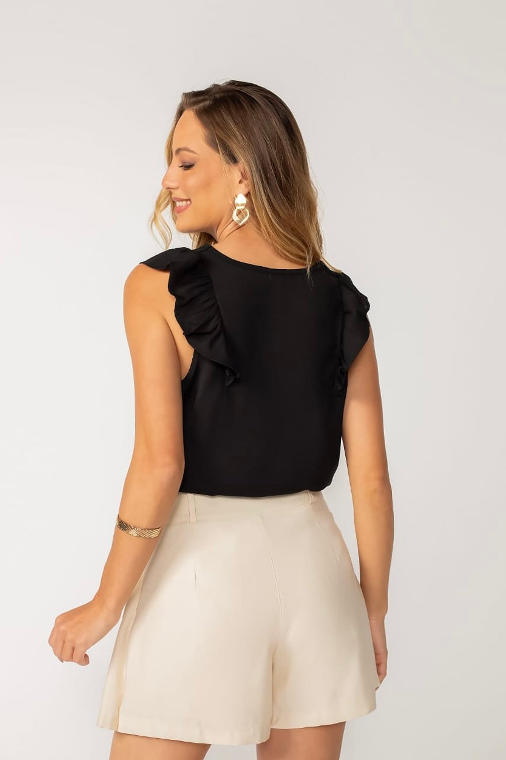 Com um toque delicado e feminino, a Blusa Bruna encanta pelo detalhe em babados nos ombros — o famoso “ombro borboleta” — que valoriza o visual com leveza e movimento. Seu decote em V equilibra o look, trazendo modernidade sem abrir mão da elegância.