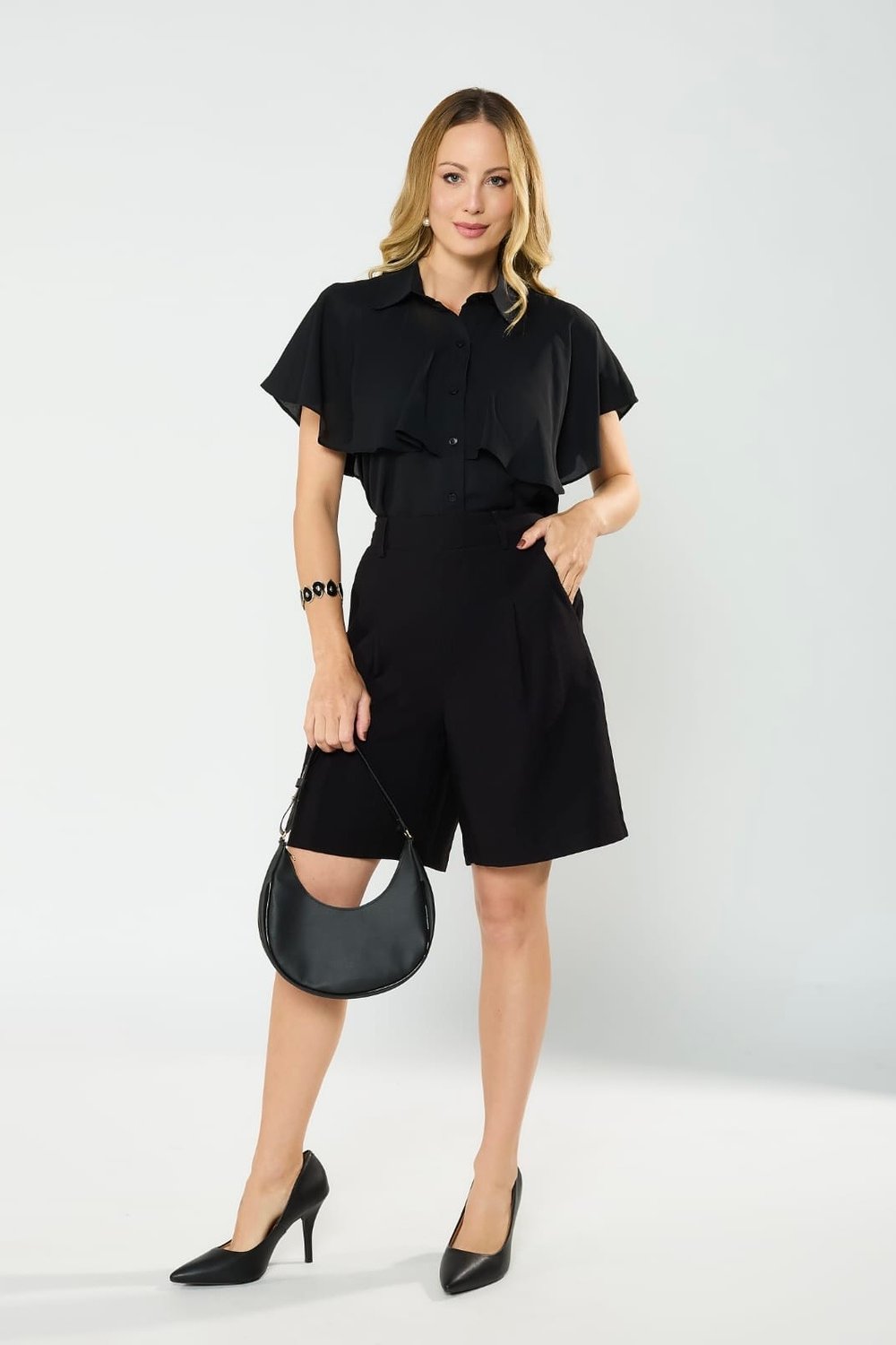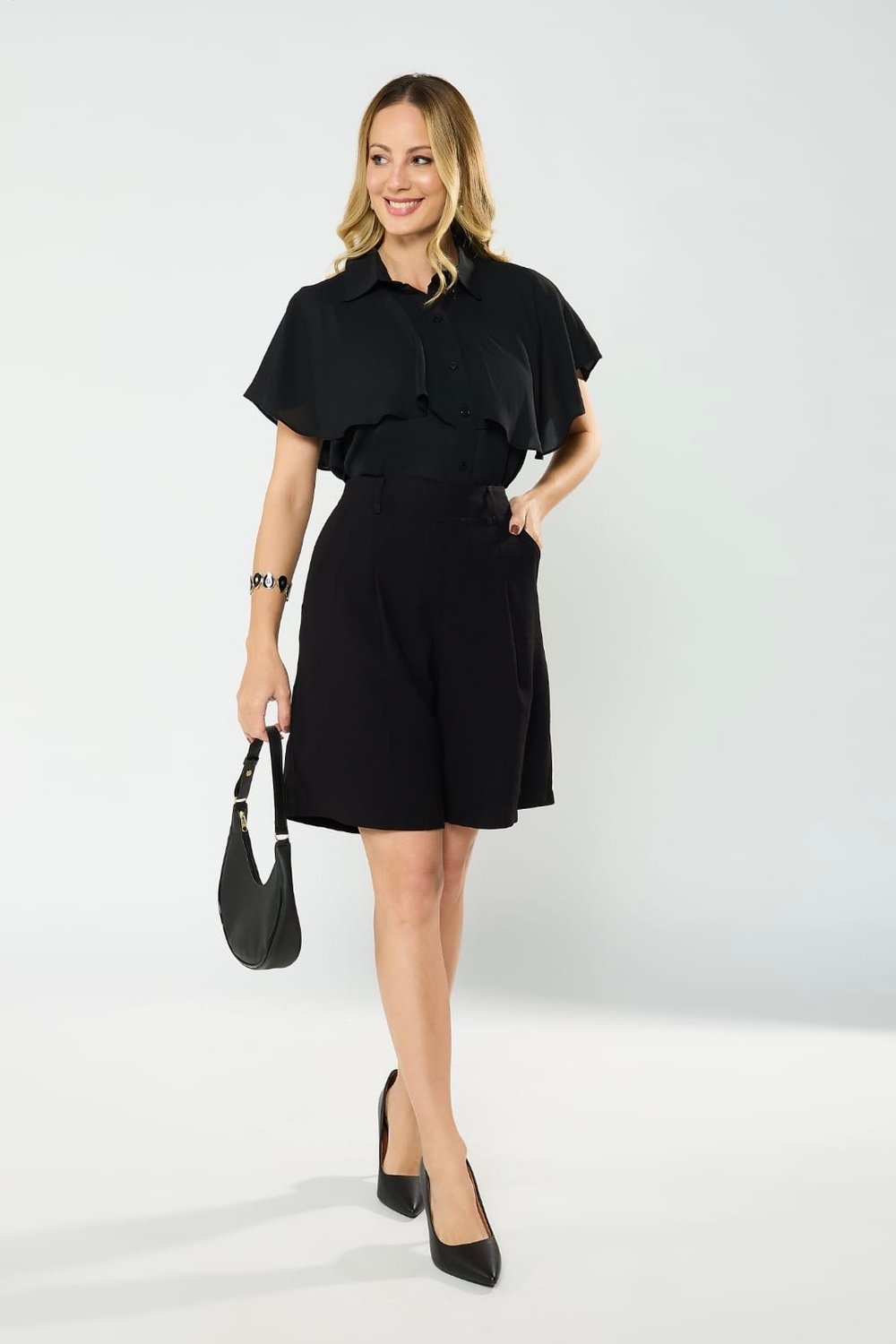 A camisa Jussara é sinônimo de sofisticação e estilo. Com modelagem reta e estruturada, ela possui decote reto e alças largas que garantem conforto e sustentação. O detalhe especial fica por conta da sobreposição leve que acompanha a peça, como uma mantinha para os ombros, trazendo ainda mais elegância e exclusividade ao visual.Versátil e refinada, é perfeita para compor desde produções mais formais até looks modernos para ocasiões especiais. Pode ser usada sozinha para um visual minimalista e clean, ou com a sobreposição para um toque de sofisticação extra.