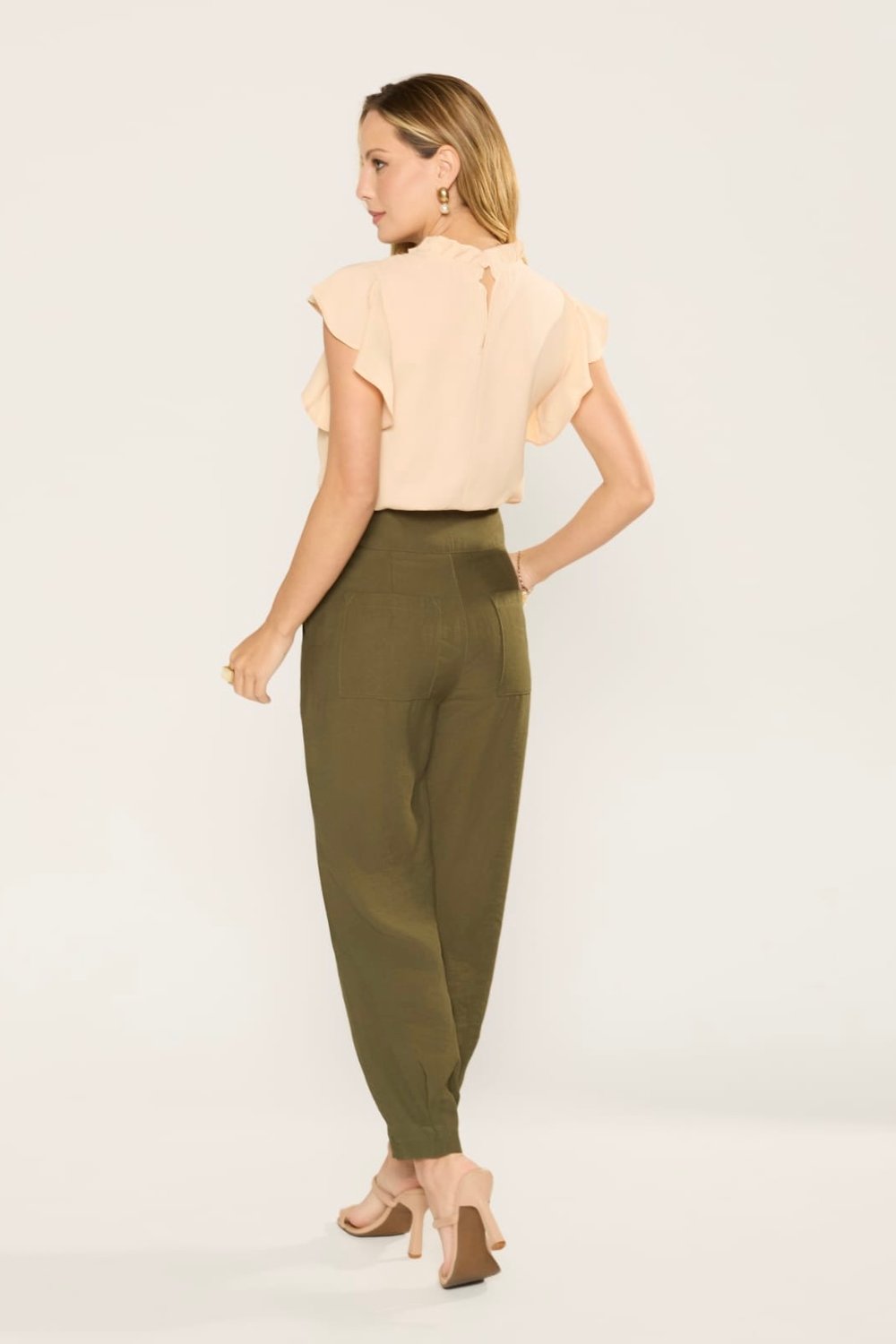 Essa calça é uma peça sofisticada e atemporal, pensada para trazer elegância e conforto ao mesmo tempo. O modelo apresenta cintura alta, que valoriza a silhueta e alonga a perna, além de possuir cós largo com fechamento frontal por botões, trazendo charme extra ao design. Possui pregas sutis na parte frontal, que criam um caimento fluido e ajudam a deixar o visual mais alinhado, sem perder o toque de leveza. O corte é reto levemente afunilado, proporcionando um ar moderno e versátil, perfeito tanto para produções casuais quanto para combinações mais formais. Além disso, a peça conta com bolsos laterais funcionais, que acrescentam praticidade ao dia a dia, sem comprometer a sofisticação do look. O tecido é leve e confortável, ideal para quem busca elegância aliada à liberdade de movimento.