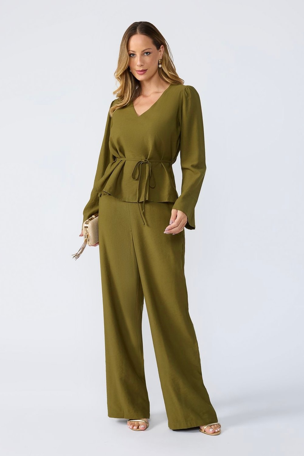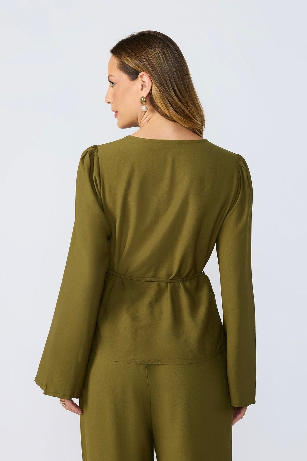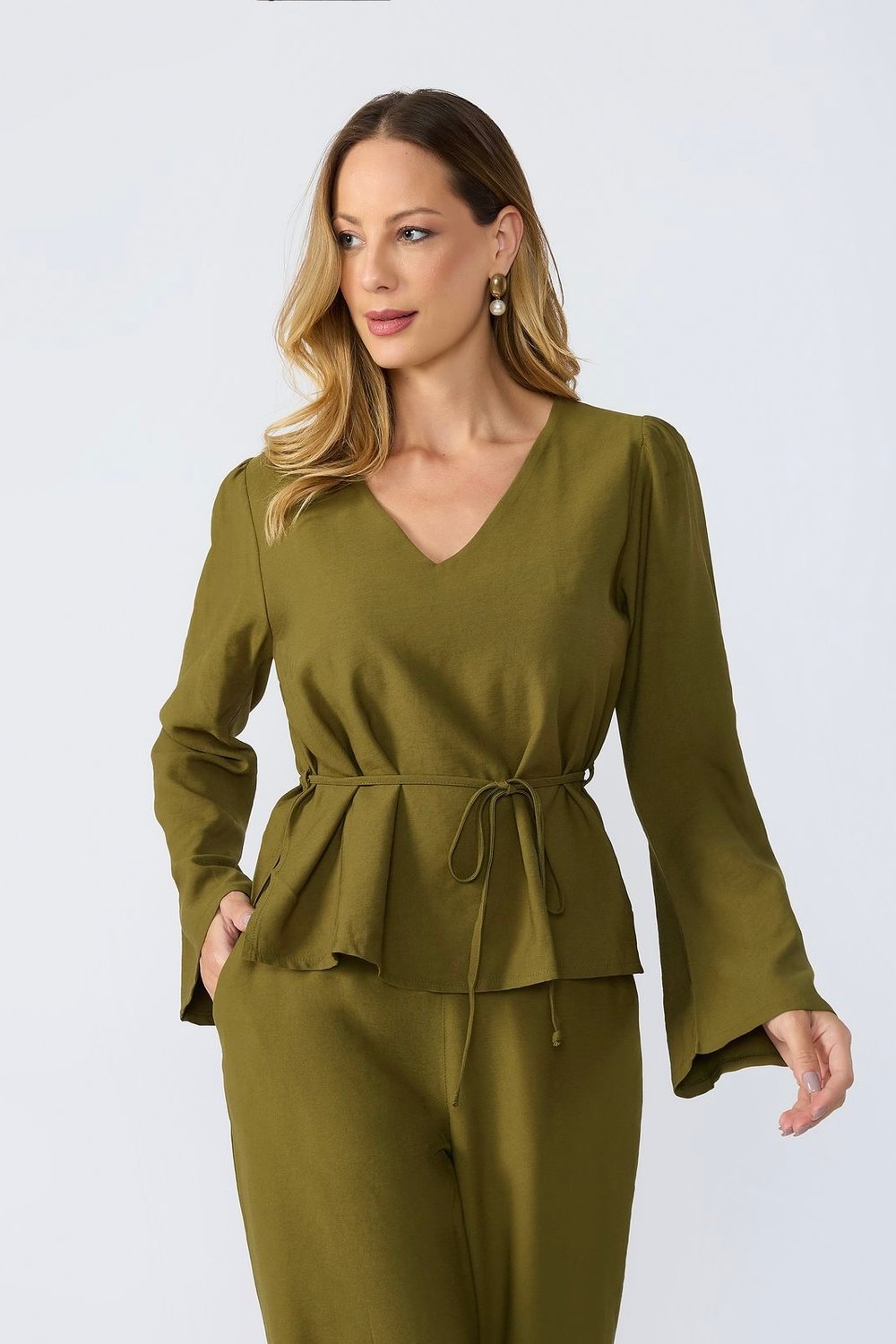 BLUSA MANGA LONGA DECOTE V CORDÃO CINTURA ISADORA
