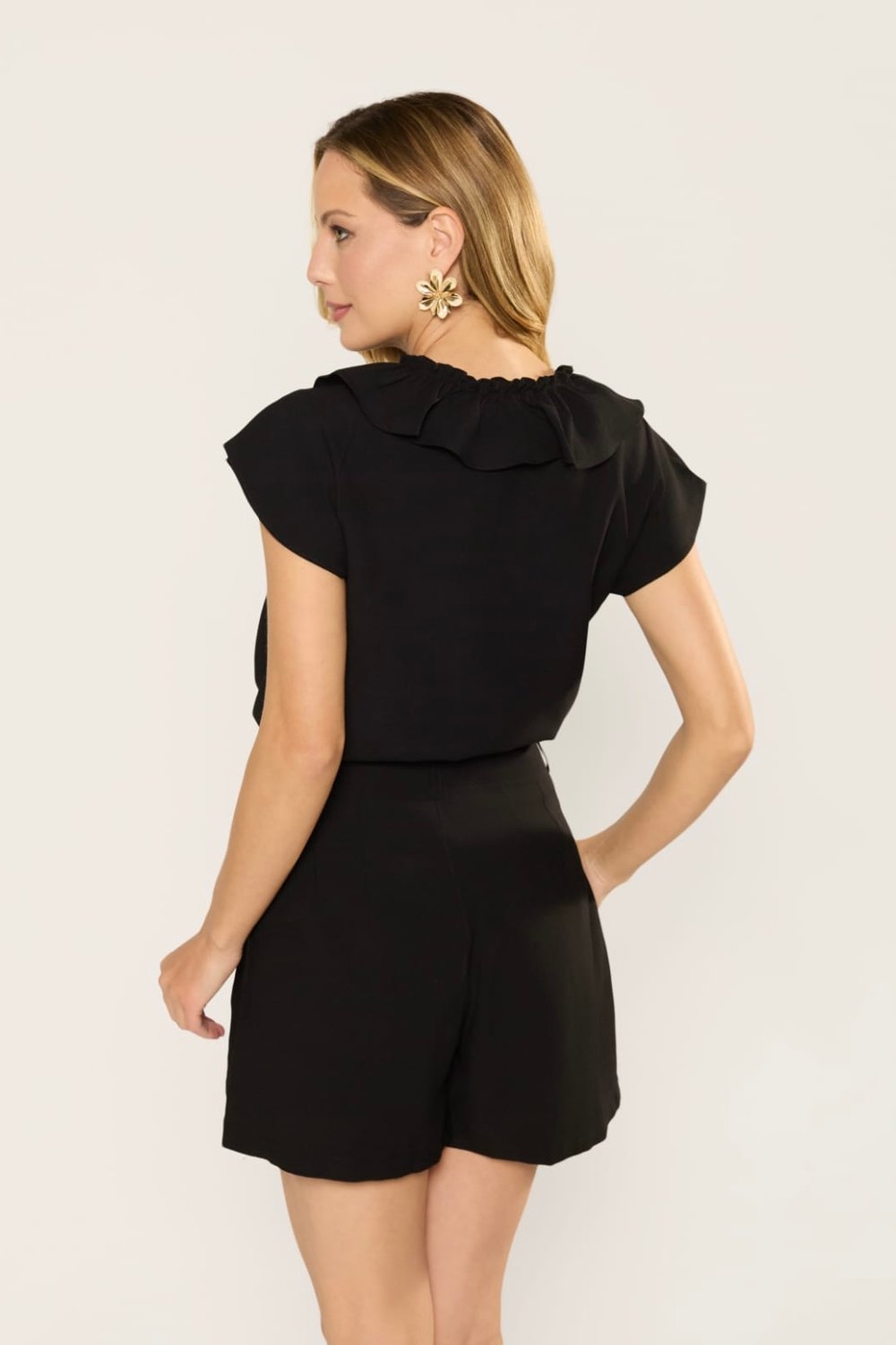 Este shorts feminino apresenta um design elegante e versátil, ideal para composições casuais ou mais sofisticadas. O comprimento é curto, oferecendo frescor e conforto para os dias mais quentes, enquanto o caimento reto e levemente solto proporciona liberdade de movimento sem comprometer a elegância. A peça possui cós alto e estruturado, que valoriza a silhueta e garante um ajuste mais firme ao corpo. O fechamento frontal é feito com zíper e um botão forrado no mesmo tecido do shorts, conferindo um acabamento mais refinado. Há passantes no cós, permitindo o uso de cinto para complementar o visual. Nas laterais, o shorts conta com bolsos, que além de funcionais, não alteram a linha do corte. O tecido tem um caimento leve e natural, sem brilho excessivo, contribuindo para o toque mais elegante da peça.