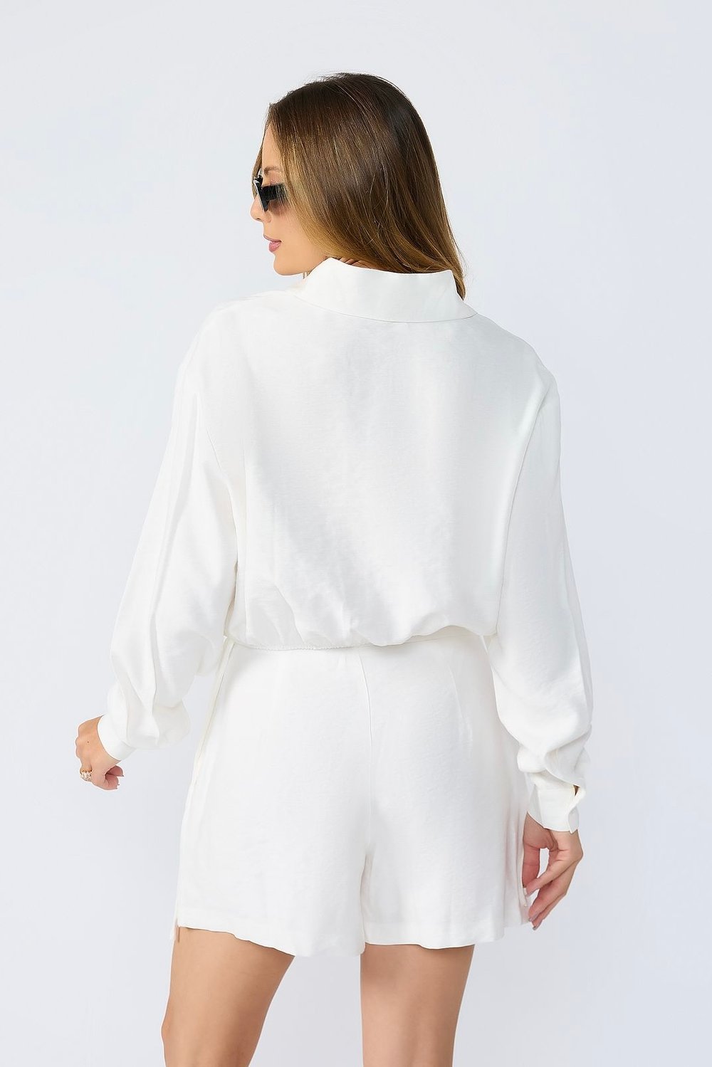 - Modelagem cropped com abotoamento frontal clássico