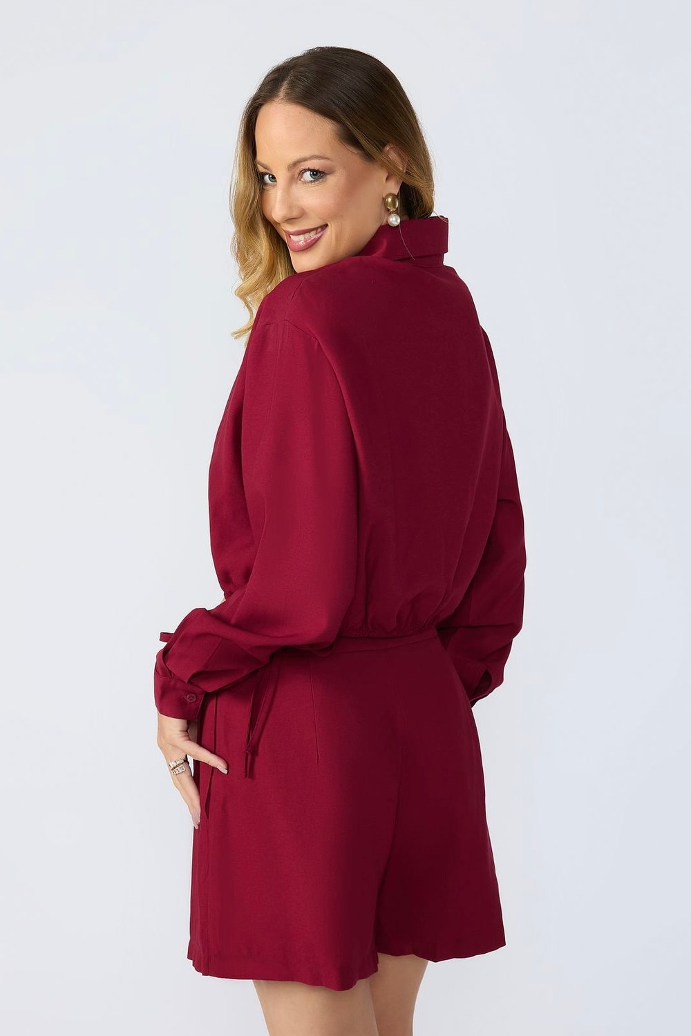 - Modelagem cropped com abotoamento frontal clássico