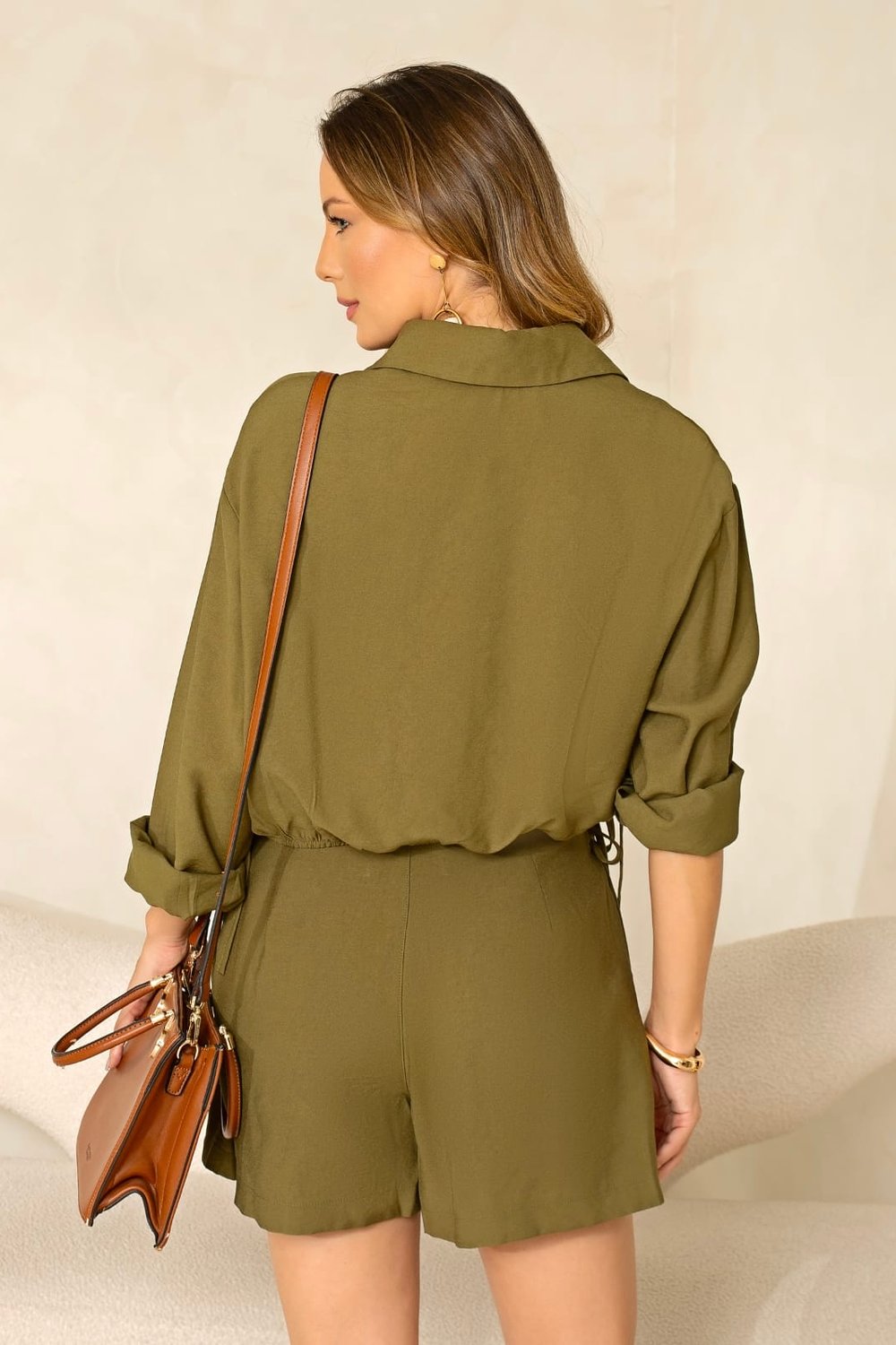 - Modelo short-saia com sobreposição frontal
