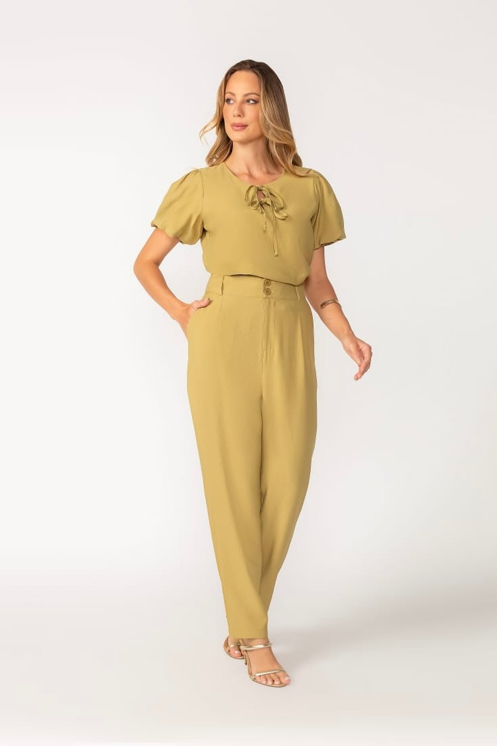 A Blusa Denise é a escolha perfeita para quem busca um toque moderno. O destaque fica por conta das duas amarrações frontais que adicionam charme e autenticidade ao look. Com mangas curtas levemente bufantes, ela garante conforto sem abrir mão da elegância.