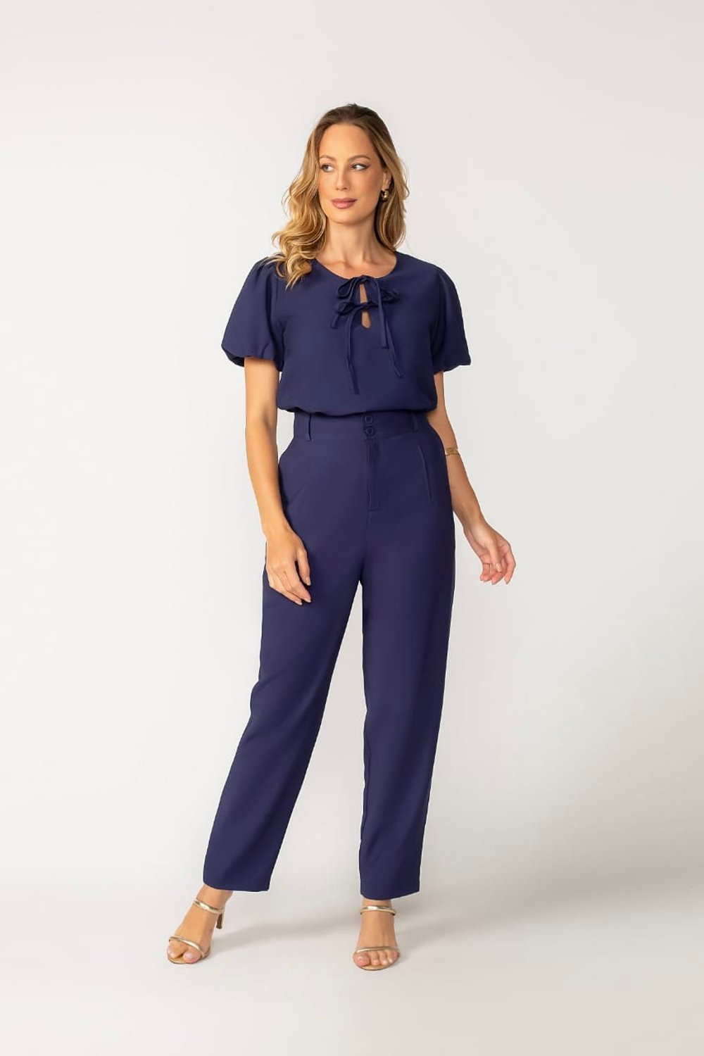 A Blusa Denise é a escolha perfeita para quem busca um toque moderno. O destaque fica por conta das duas amarrações frontais que adicionam charme e autenticidade ao look. Com mangas curtas levemente bufantes, ela garante conforto sem abrir mão da elegância.