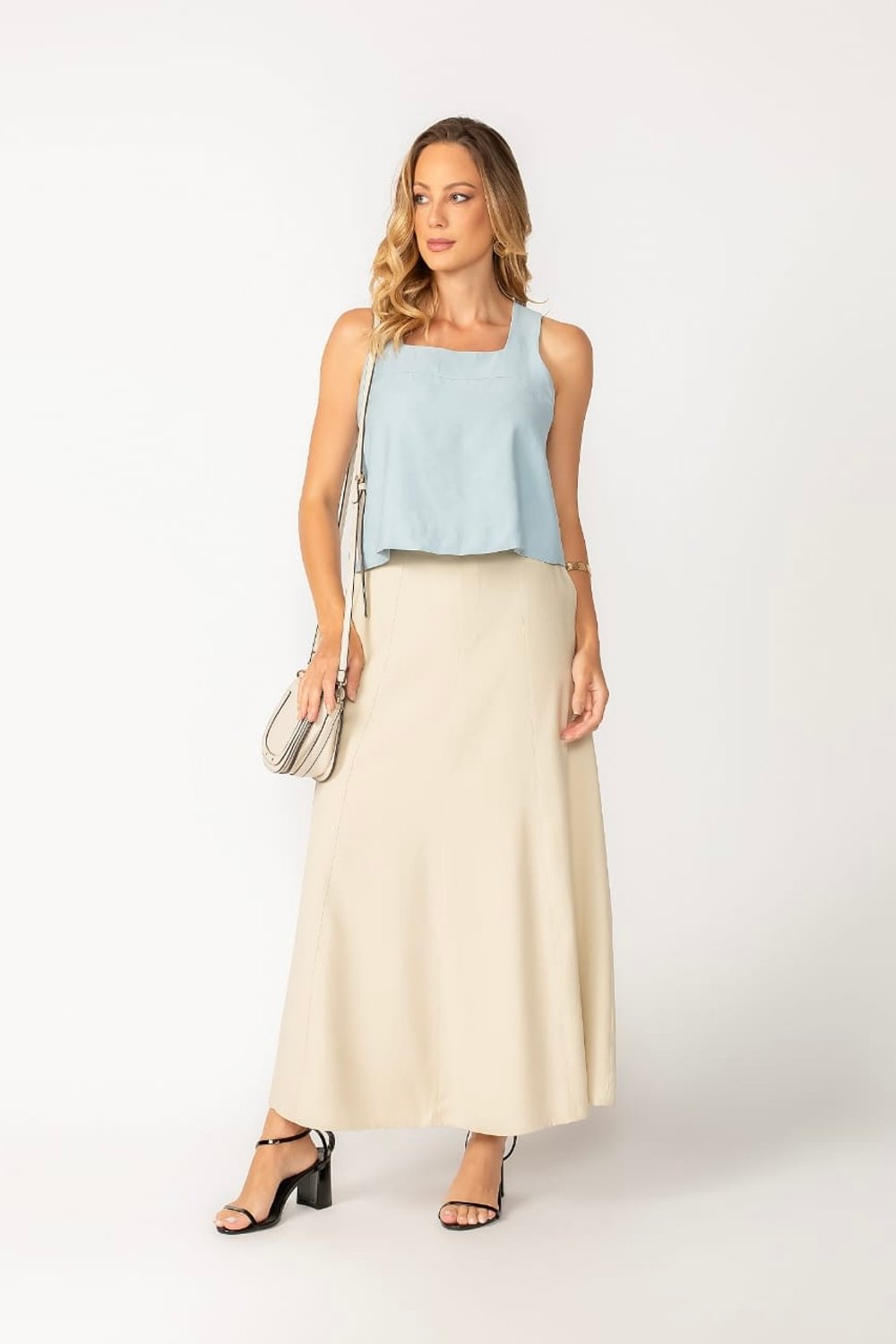 A Regata Carolina é a escolha perfeita para quem busca leveza e frescor com um toque de estilo moderno. Seu grande destaque está no recorte posterior com abertura nas costas, que garante charme e um visual diferenciado. Com decote quadrado e caimento soltinho, a peça é ideal para dias quentes com elegância.