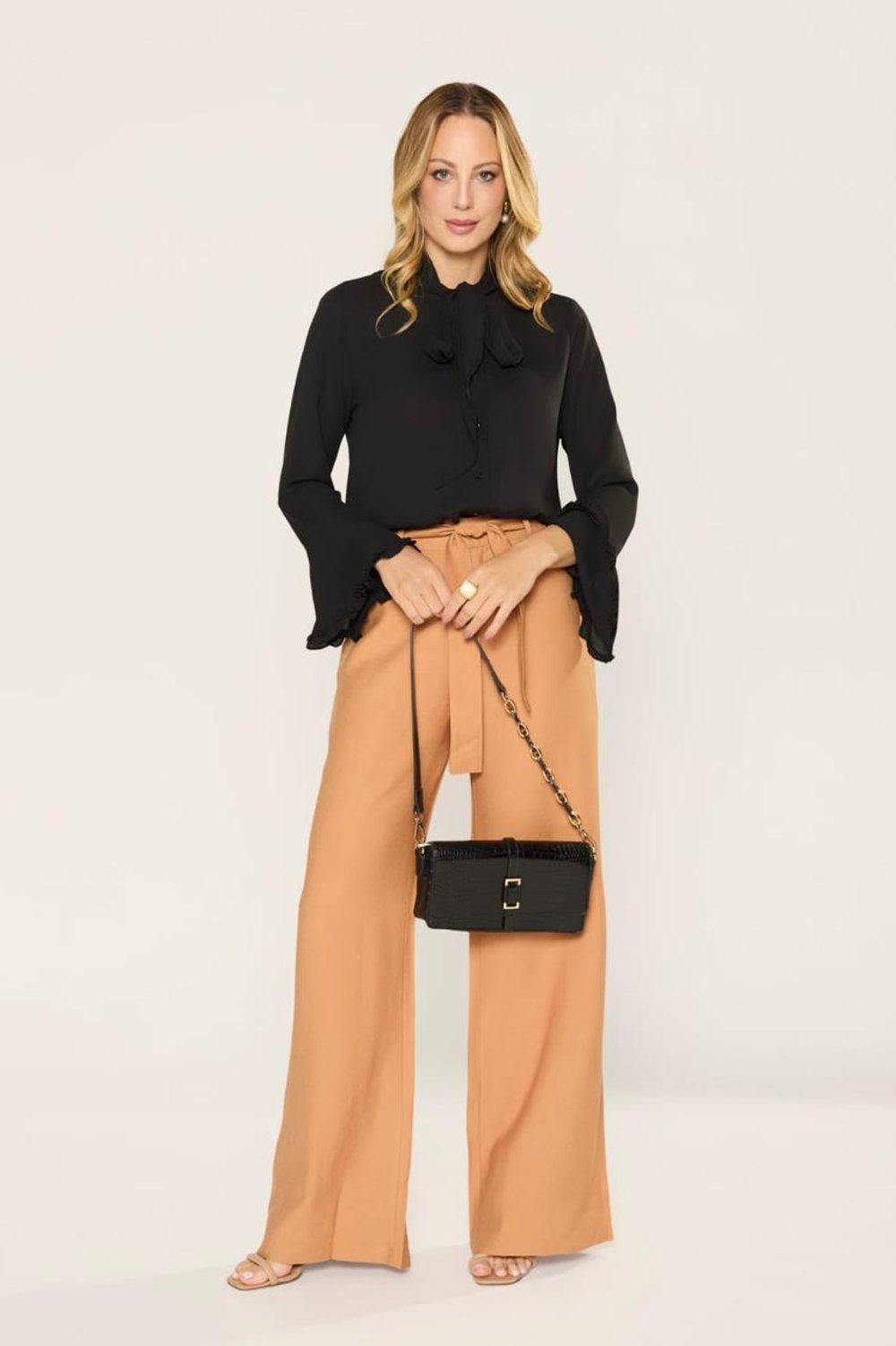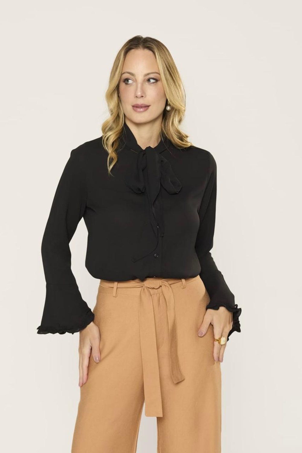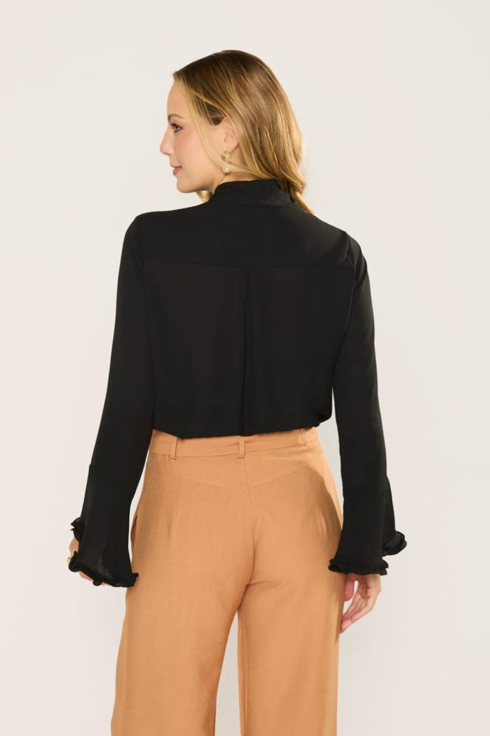 BLUSA MANGA LONGA BABADO AMARRA GOLA ANALIS