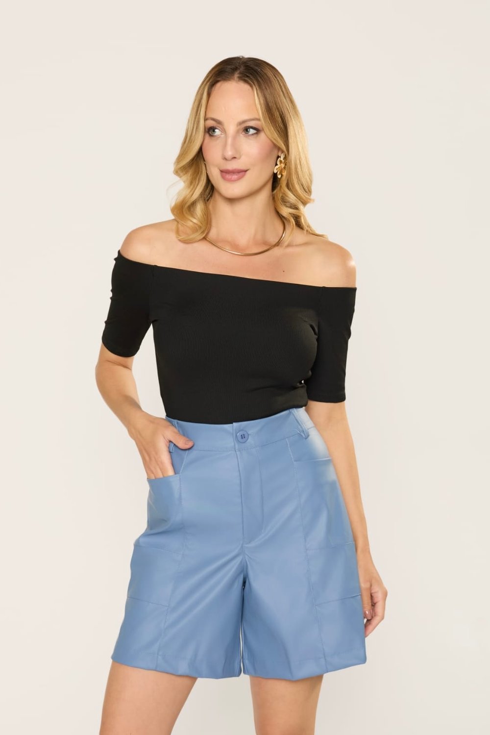 - Decote ombro a ombro que valoriza a silhueta