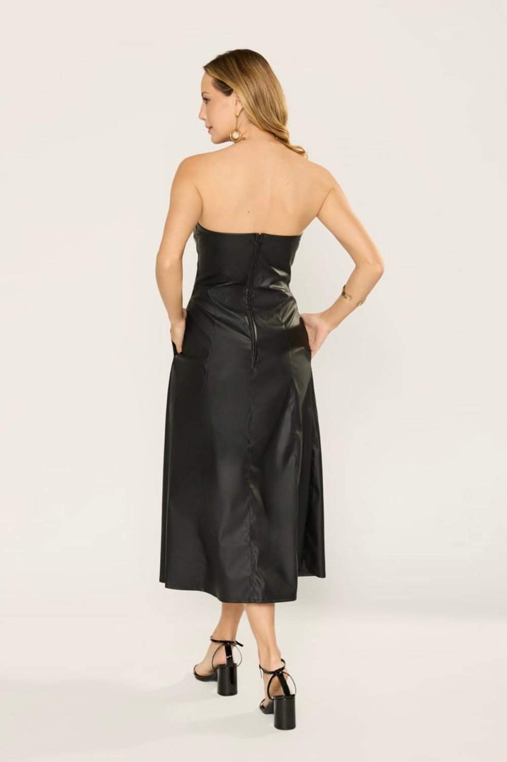 VESTIDO TOMARA QUE CAIA POLIURETANO BOLSO FENDA JULIANA