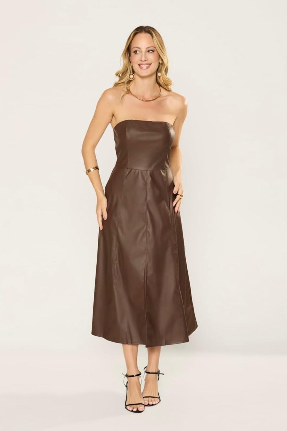 VESTIDO TOMARA QUE CAIA POLIURETANO BOLSO FENDA JULIANA